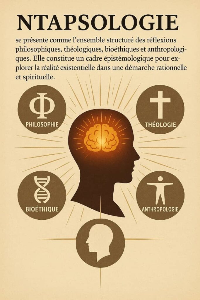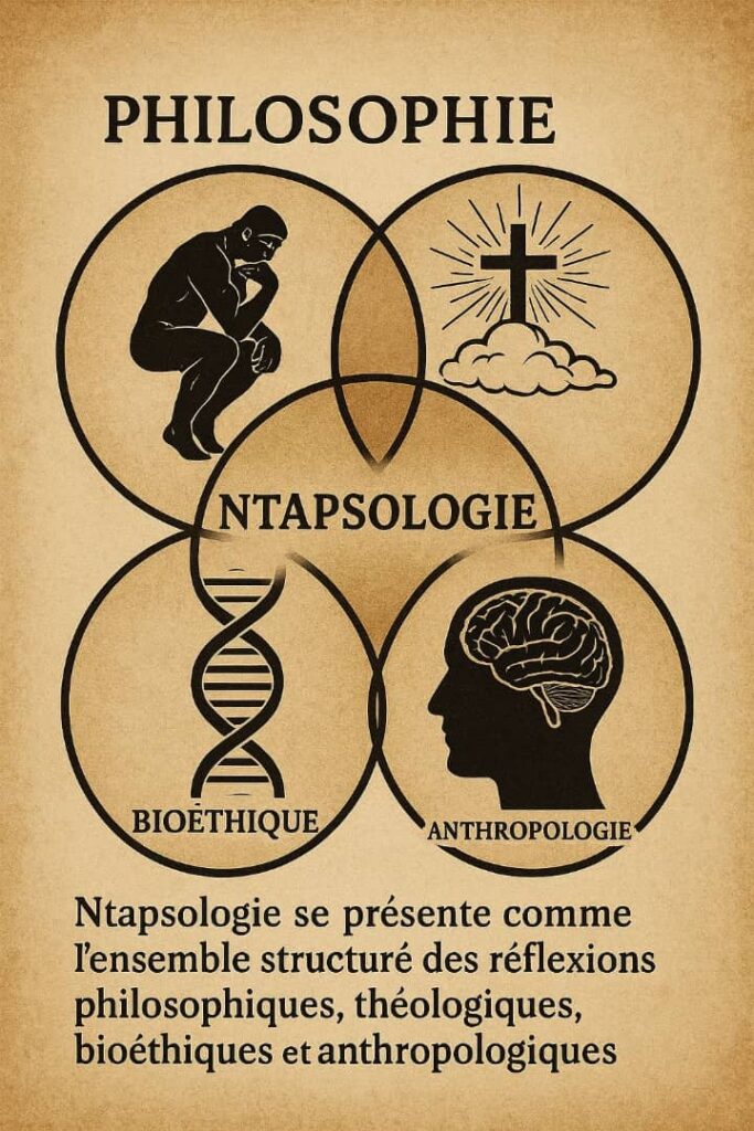 Ntapsologie se présente comme l’ensemble structuré des réflexions philosophiques, théologiques, bioéthiques et anthropologiques. Elle constitue un cadre épistémologique pour explorer la réalité existentielle dans une démarche rationnelle et spirituelle.
